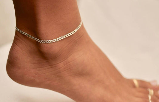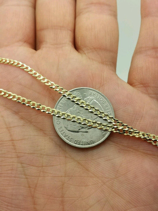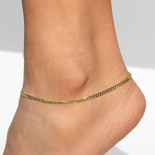 10K Yellow Gold 2.5MM Solid Curb Cuban Link Chain Anklet