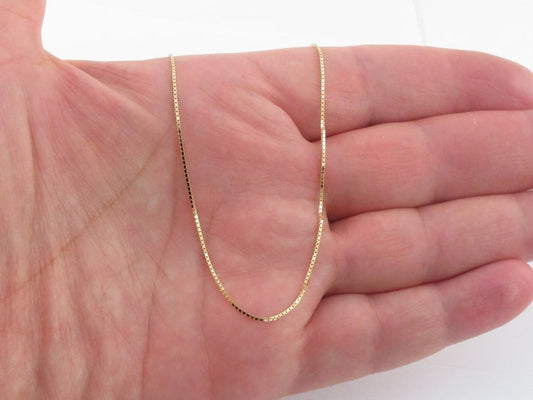 14k Dainty Thin Yellow Gold Box Chain Necklace .8MM Pure 14 Karat Gold Necklace, 16''-30’' Men Women Unisex Teens 14k Box Chain Necklace