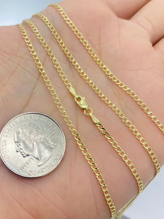 14K Dainty Thin Yellow Solid Gold Italian Cuban Curb Chain Necklace 2.2MM Pure 14 Karat Gold Necklace, 16''-30’' Men Women Unisex Teens 14k Cuban Curb Chain Necklace